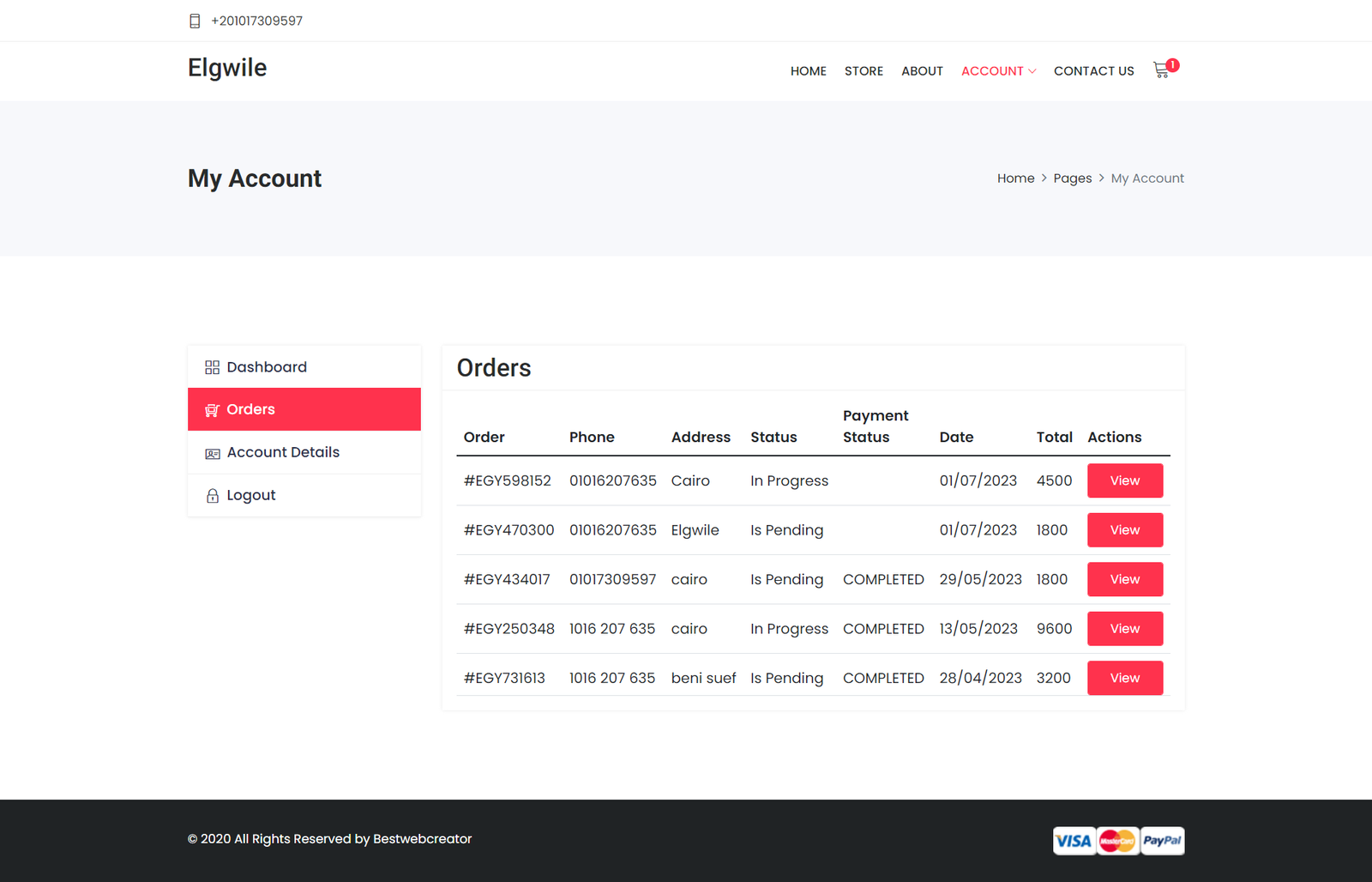 الدفع الإلكتروني: نقدم واجهة دفع آمنة تدعم باي بال (PayPal) وتمكن العملاء من إتمام عمليات الدفع بسهولة وأمان.