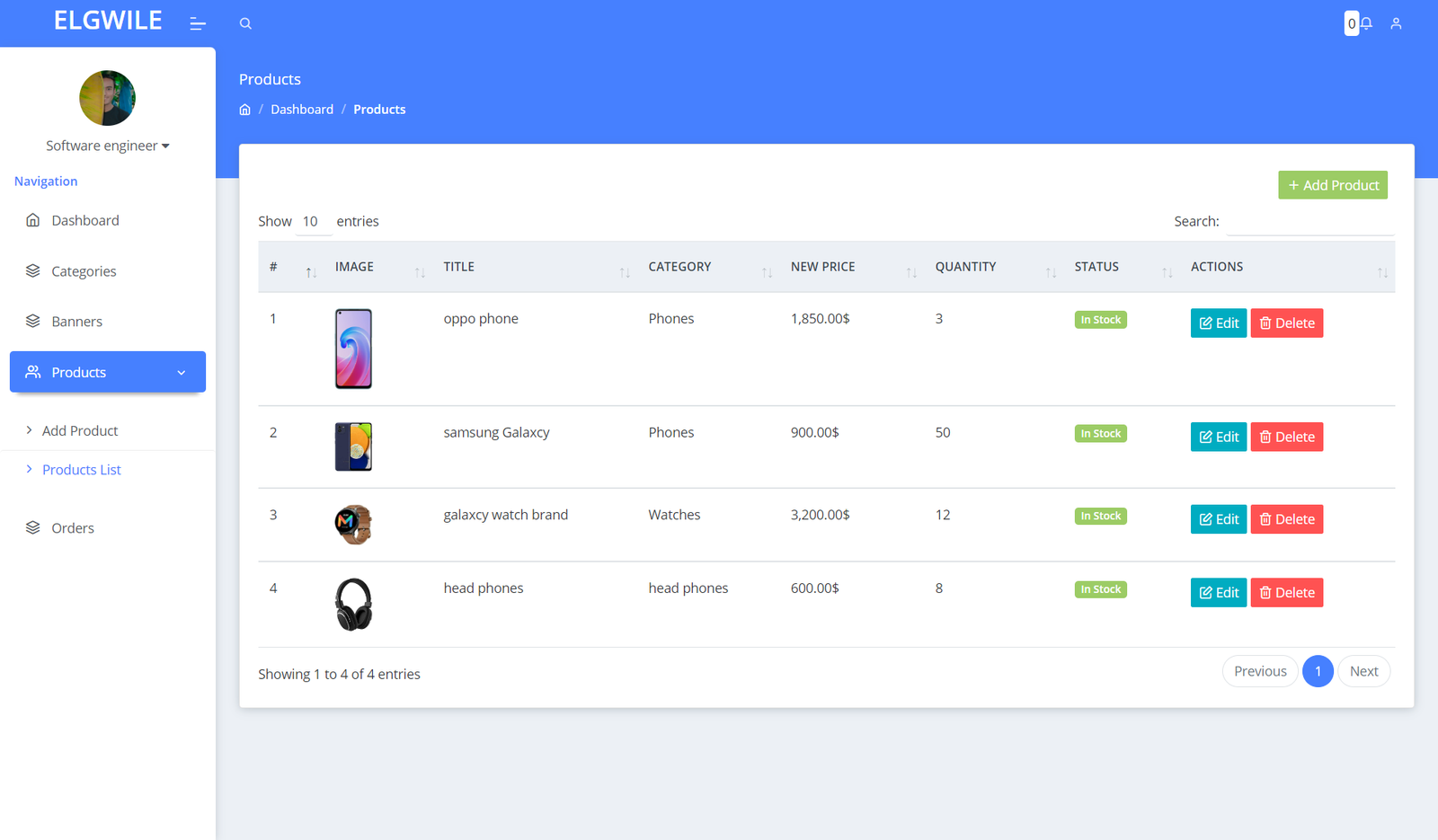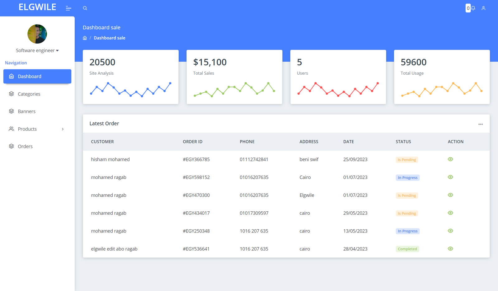 لوحة تحكم للمسؤول: تتيح لوحة التحكم للمسؤول إدارة المنتجات والأقسام ومتابعة الطلبات وإدارة قاعدة البيانات والمستخدمين بكفاءة.